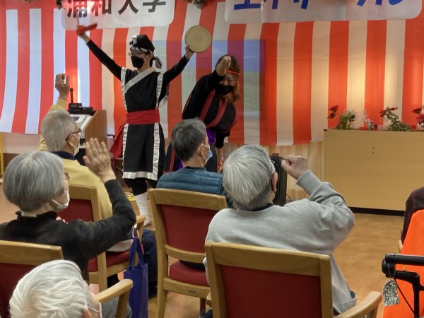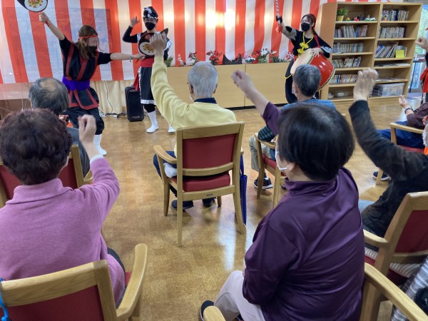 そして館内に響かせてくれた太鼓の音に惹かれて、居宅の職員さんや厨房の職員さんまで見に来て下さいました(^^)v