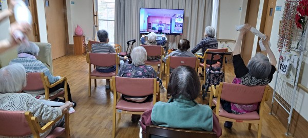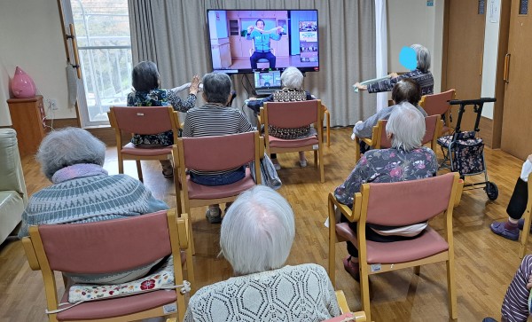 「体が柔らかくなりました。とても楽しいですね」と仰られ、とても笑顔溢れるリモート体操のお時間を