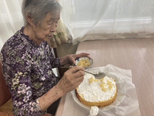 当日は、ご利用者様にお手伝いしていただき、バースデーケーキをご用意しました(^O^)