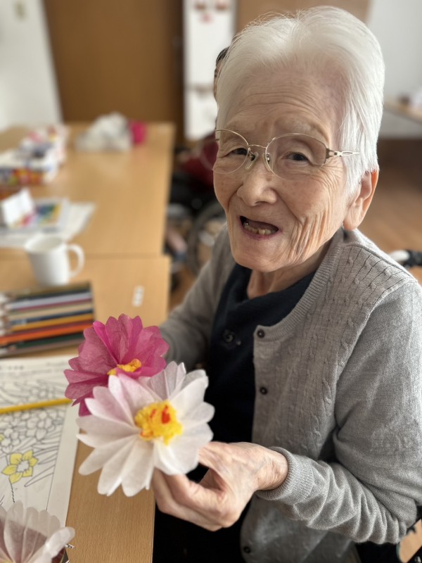 『花びらを開くのが難しかったけど、だんだん慣れてきたよ。指先の運動になるね♬』