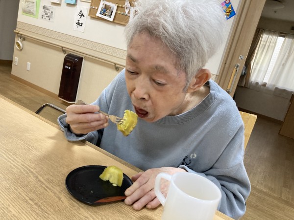 ホームの畑でとれたサツマイモをふかしておやつに召し上がっていただきました。