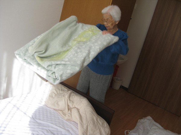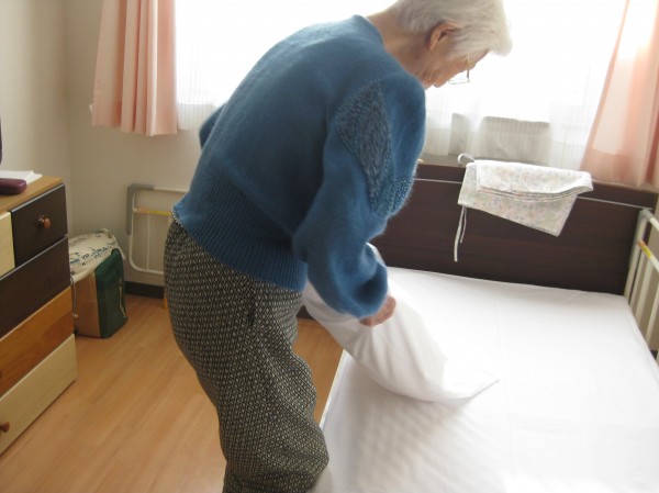 職員と一緒にシーツ交換をしているご様子です( ^ω^)・・・ テキパキと素早くシーツ交換して下さいました。綺麗に仕上がりました(*^。^*)