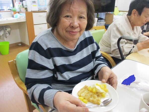 今回のおやつイベントは 旬のリンゴを使用した クレープ です。