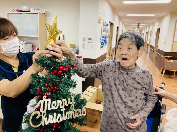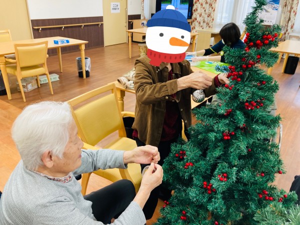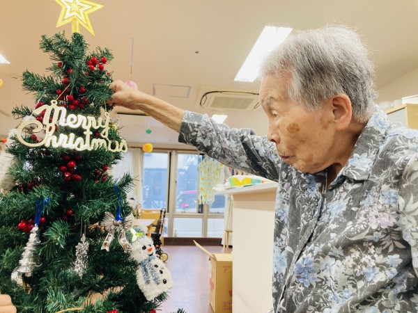 1階のご利用者様にお手伝いいただいて急遽ツリーの飾り付けをしました☆