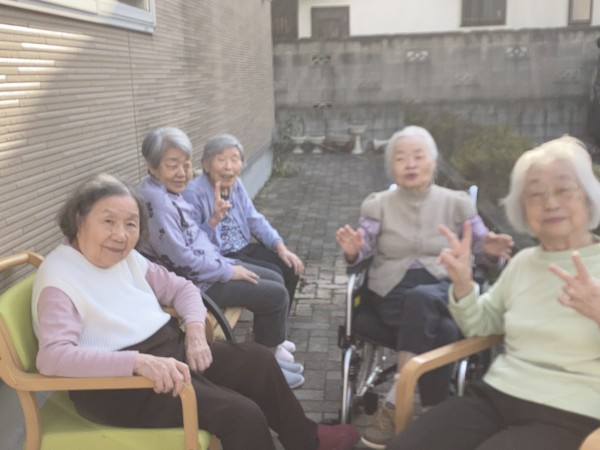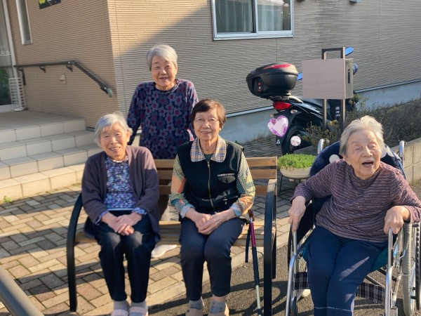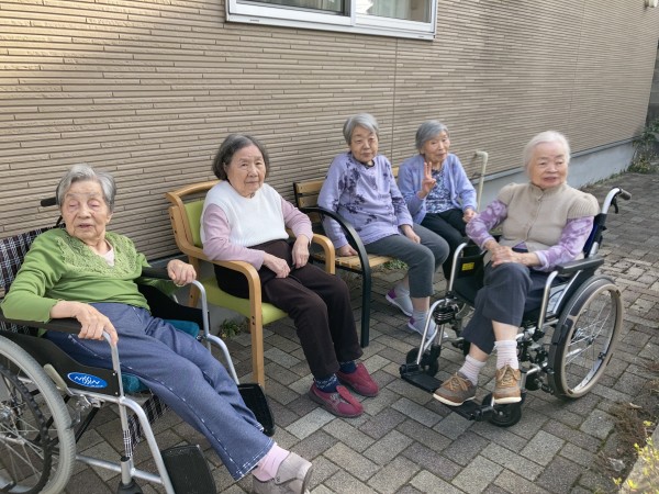 先日、施設の外にご利用者様をお連れして皆様で秋の外気浴を楽しんでいただきました(^^♪