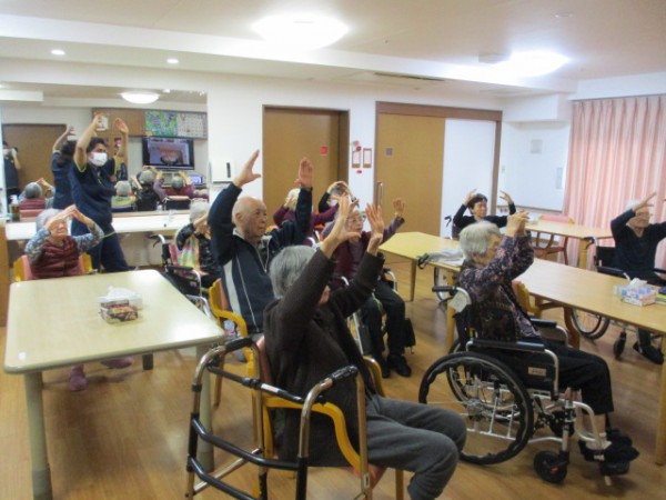 先生の動きに合わせて腕を大きく動かしたり、足を開いたりしていました(˶' ᵕ ' ˶)