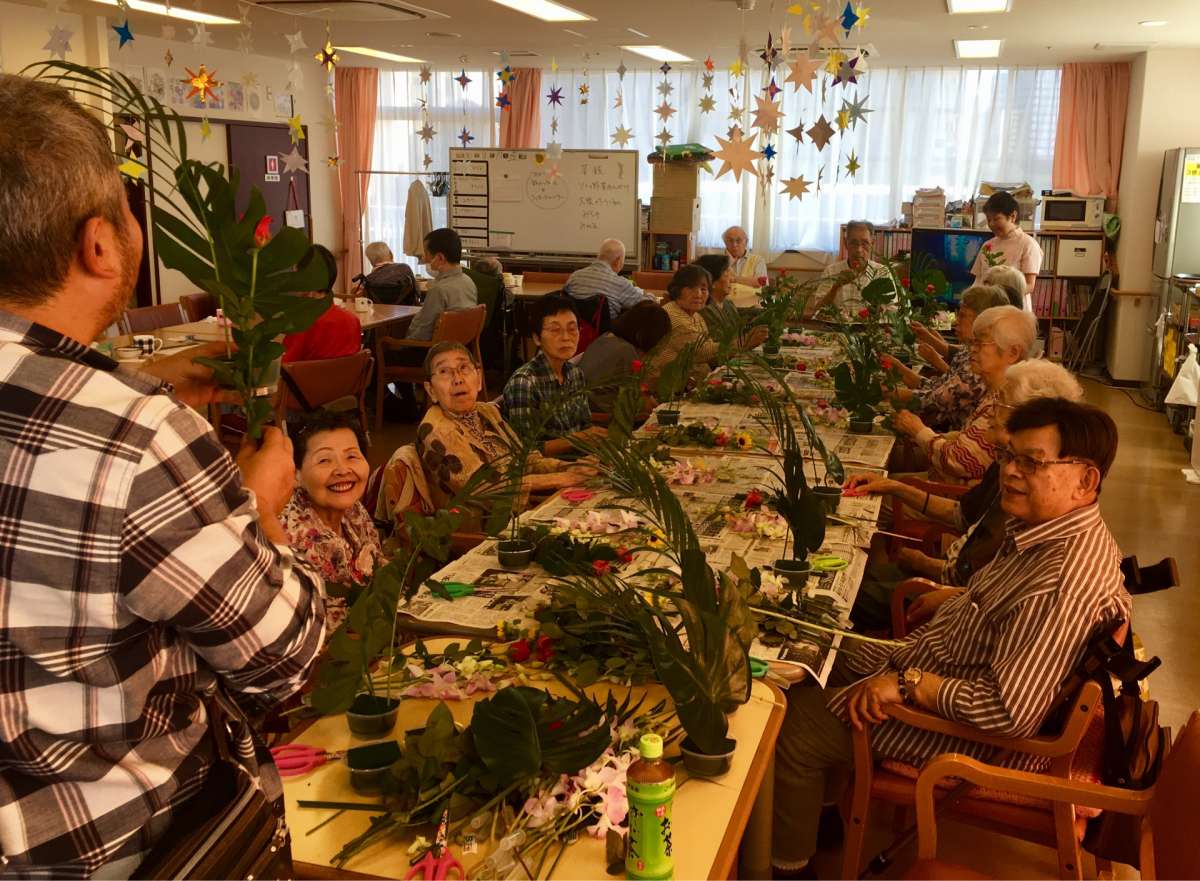 デイサービスセンター遊・新横浜では、フラワーアレンジメント教室を開催して