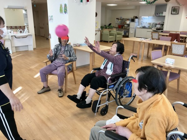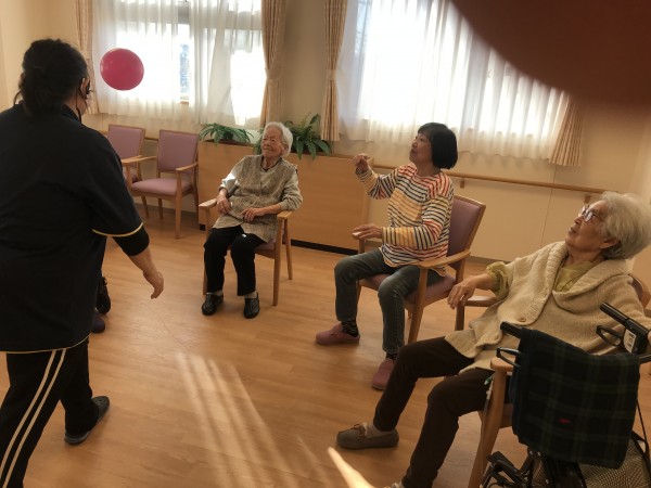 円の真ん中にスタッフが立ち、順番に風船をパスすることで皆様楽しめたようです(*´꒳`*)