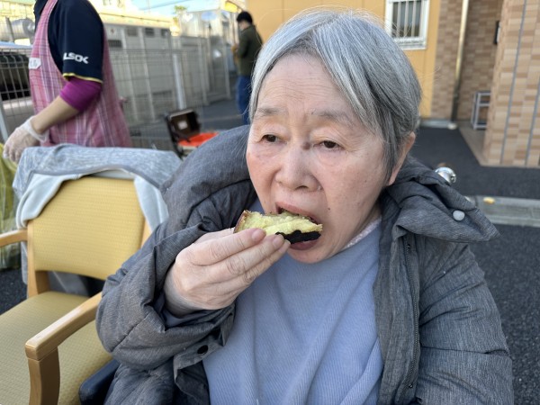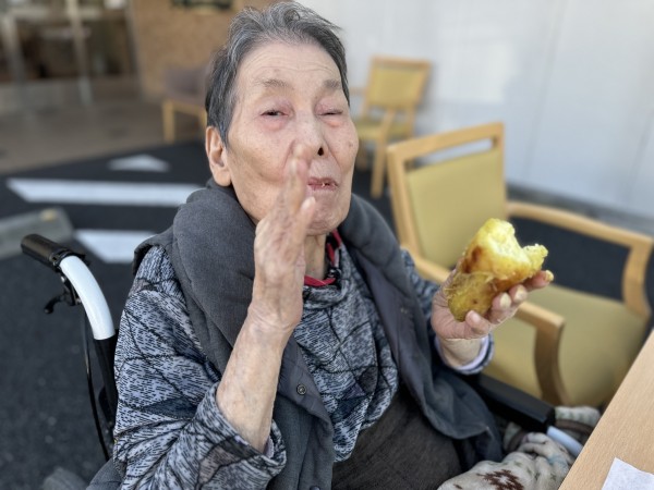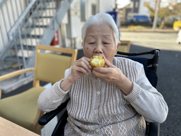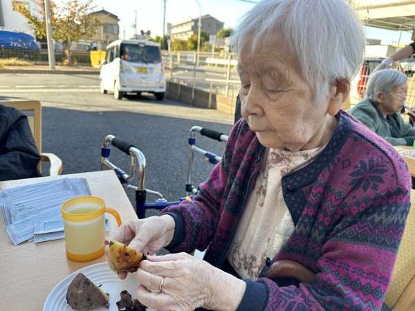 火が通ったところで、ご利用者様に外に来ていただき、お芋と寒さを堪能していただきました(´艸`*)