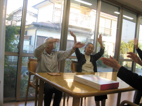 ビデオを見ながら体操をされています! 毎日行っているので慣れたものですね!(^^)! 楽しみながら行っています!!