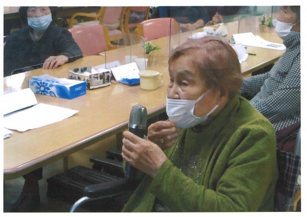 本日午後のレクリエーションは【カラオケ大会】です。久々のカラオケ大会、12名の方がエントリーしてくださいました。皆様とてもお上手、歌っていいですよね。歌われた後の皆様の拍手も素晴らしかったです。カラオケのシステムが変わってしまい、点数がでなくなってしまったので残念という方もいらっしゃいますが、逆に点数が出ない方が純粋に音楽を楽しめるような気がしたのは私だけでしょうか?今日も楽しく盛り上がった【カラオケ大会】になりました。