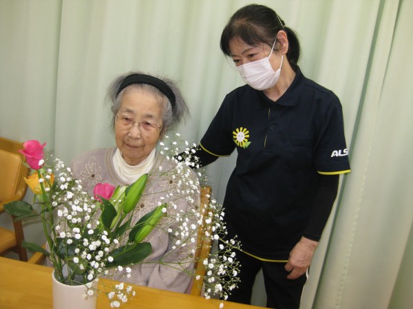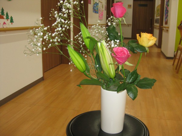 こんにちは! グループホームみんなの家・あきがせの介護ブログです! よろしくお願いいたします。 今日は娘様がお花と果物の差し入れがありました。そのご様子をお知らせいたします!