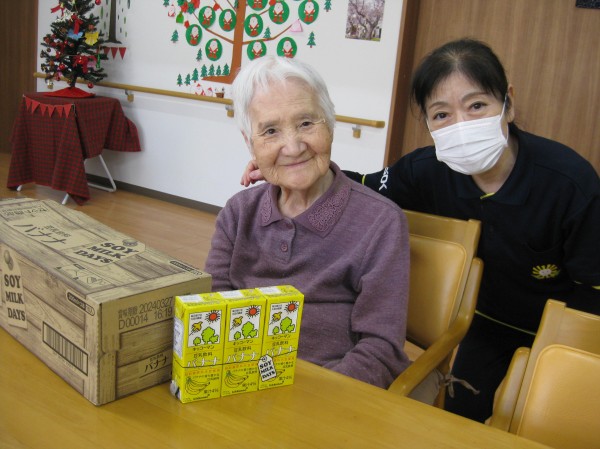 こんにちは! グループホームみんなの家・あきがせの介護ブログです! よろしくお願いいたします。 今日は娘様から飲み物の届け物がありました。そのご様子をお知らせいたします!