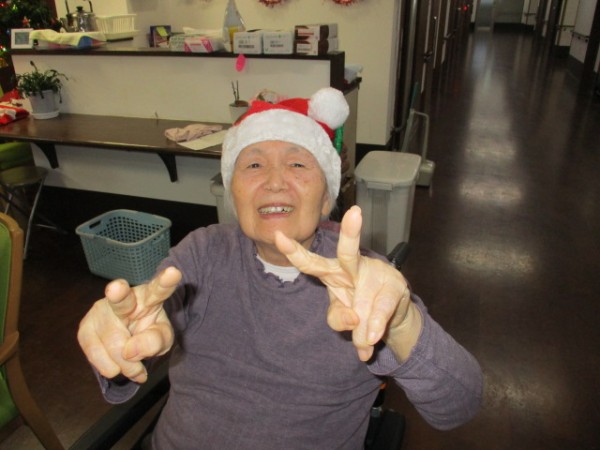 「似合うわよ!」の声に自走して鏡に向かいサンタ帽の向きを変えながら終始笑顔(/・ω・)/