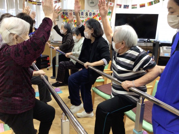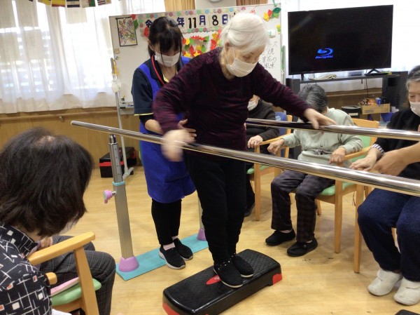 寒くなってきて身体を動かすのも億劫になりますが、皆で平行棒を使っての運動なら楽しく運動できますね〜