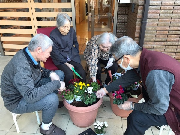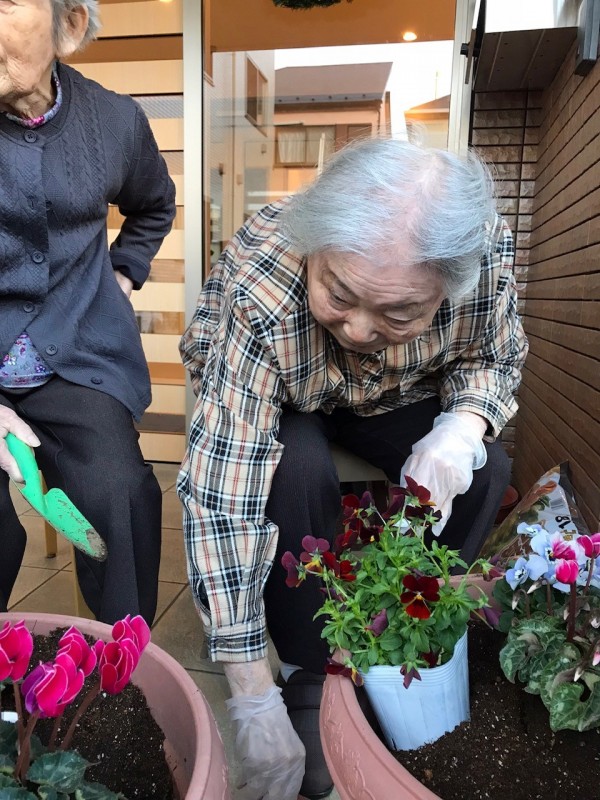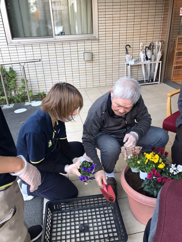 冬に咲く花を寒い季節もガーデニンを楽しめるように、植木職人だったご入居者様にご指導いただきながら植えてみました。