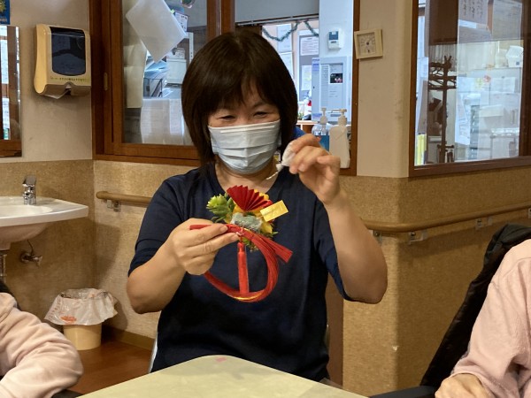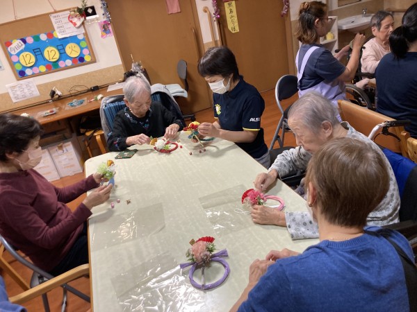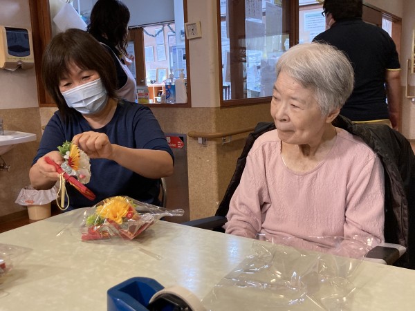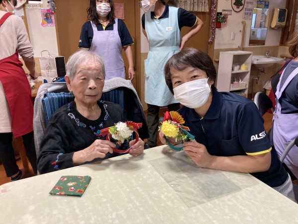 12月12日に近くの三保1のホームにてオレンジカフェを実施今回は新年飾り作りを行いました。数名ホームからも参加させていただきました