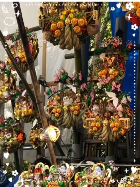 大小たくさんの豪華な熊手が売られていて...