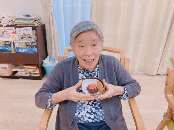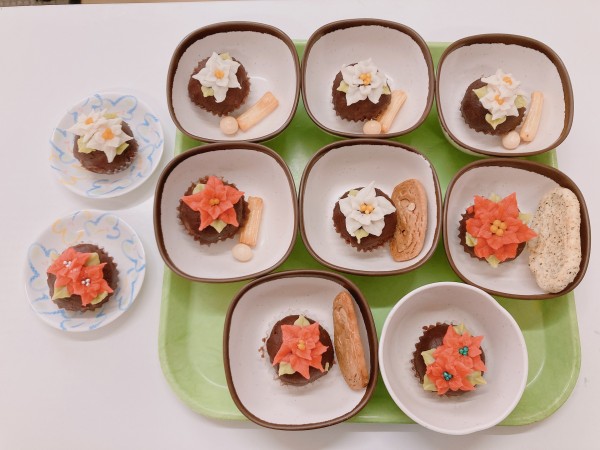 見た瞬間「これ、食べていいの?」とすぐに食べ始めようとする花より団子なお母様もいらっしゃって職員共々ほのぼのしました(´▽`*)