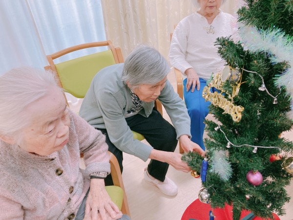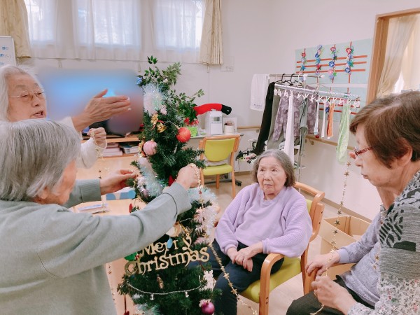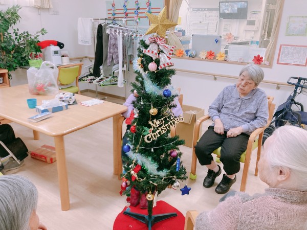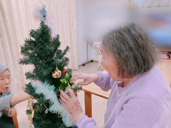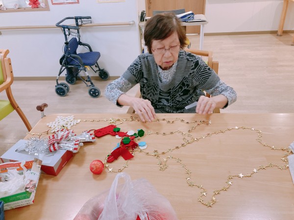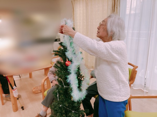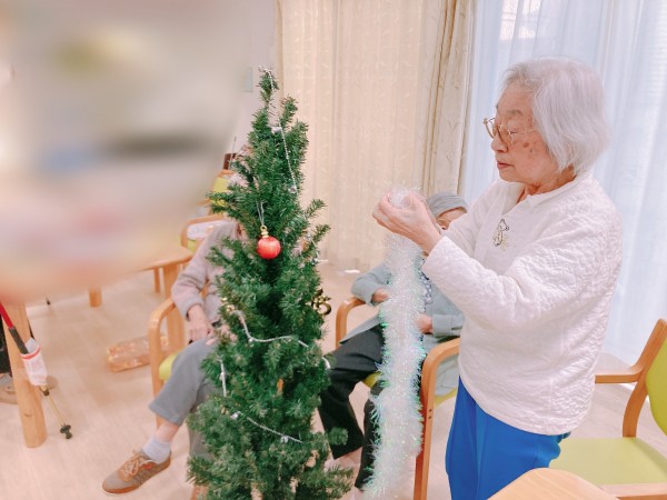 先日、午後のレクリエーションでクリスマスツリーの飾りつけをして頂きました(^^♪