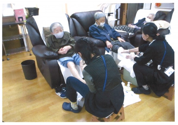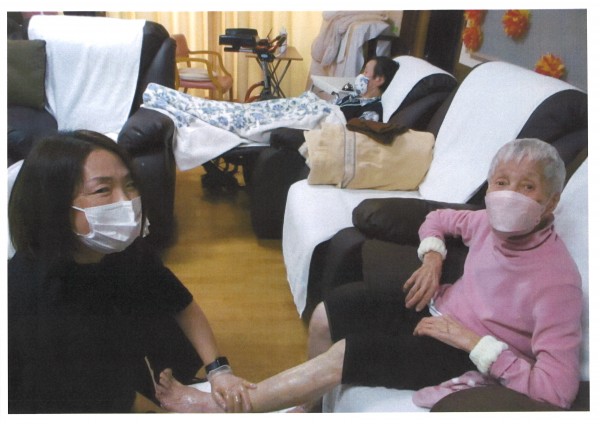 本日は【シニアセラピー】優しいタッチのリンパドレナージュの日です。先月リクライニングチェアを増やしたのでふわふわのソファーで施術を受けることができ、また椅子の間隔も広く取れるため今まで以上にリラックスしていただけたのではないかと思います。シニアセラピーの日はソファーをシニアセラピーで占有してしまい食後のお休みが出来なかった方もソファーの台数が増えたことにより、ゆったりと休んでいただくことが出来るようになりました。