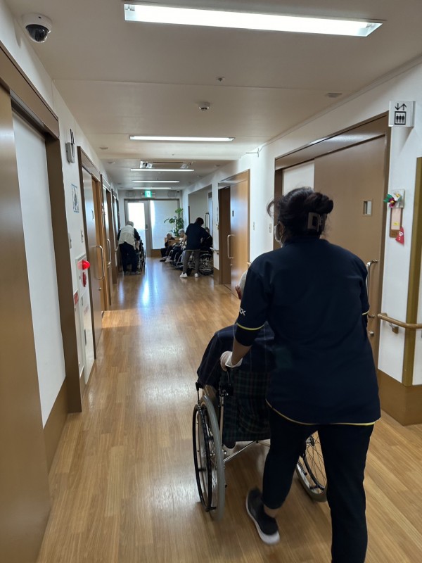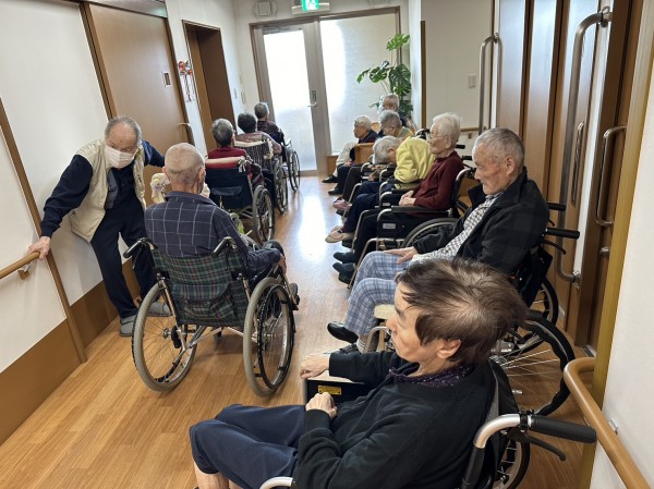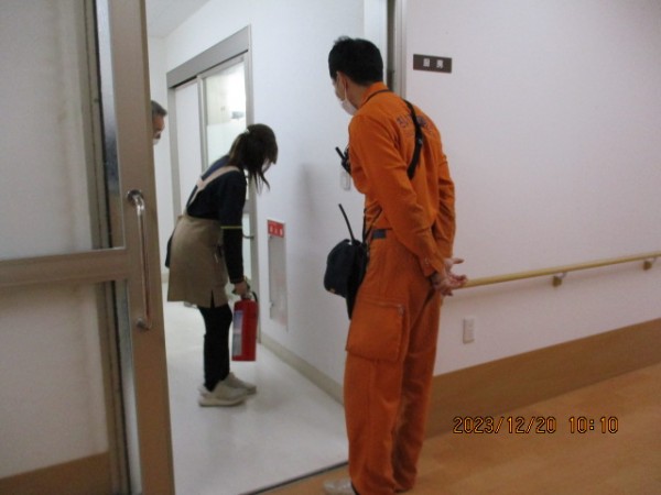 施設の避難場所や消化器の位置など様々な事を確認した後に入居者様と避難訓練を行いました!!