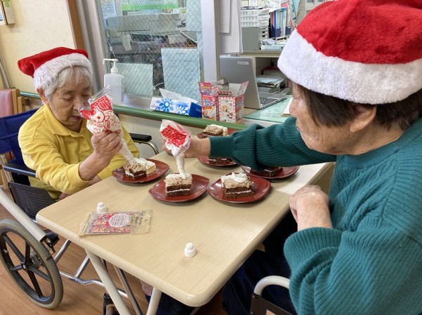 今日のクリスマス会に向けてケーキの準備を手伝ってくださっています。