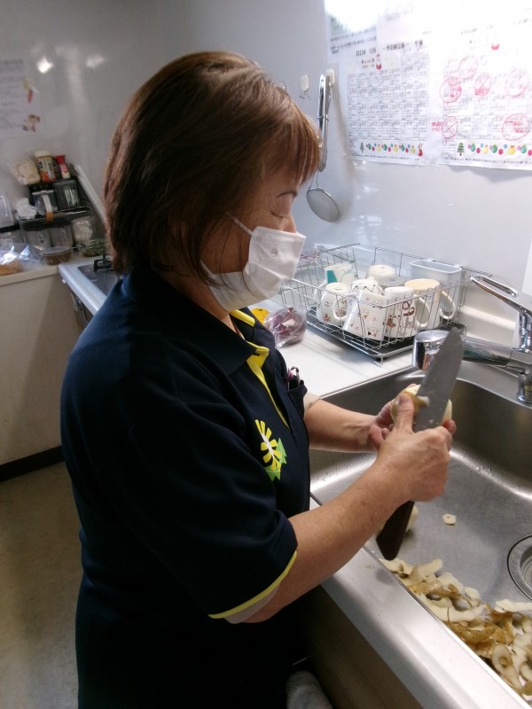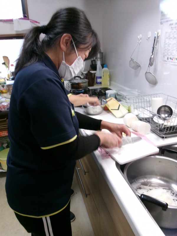 明日のクリスマスのためにポテトサラダ作り!台所ではホーム長が正月用のなます作り!