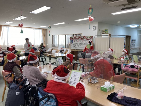 ご利用者の皆様にもサンタの帽子や服を着て頂いたので