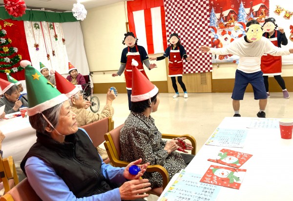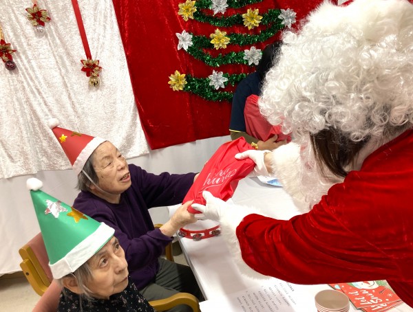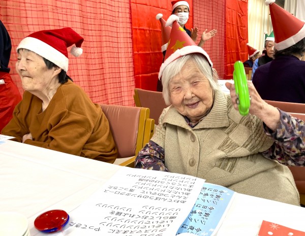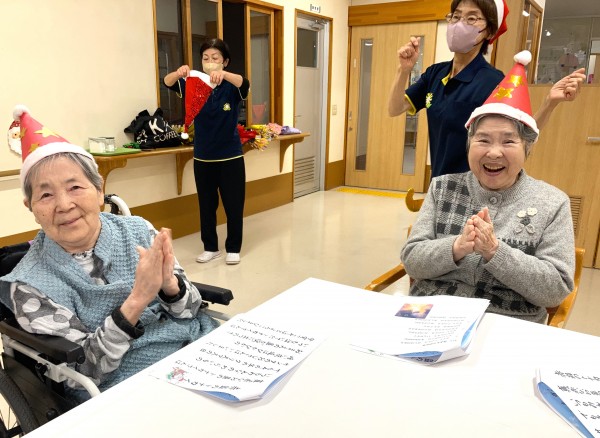 ご利用者様たちにはクリスマスハットをかぶっていただきました(^^)