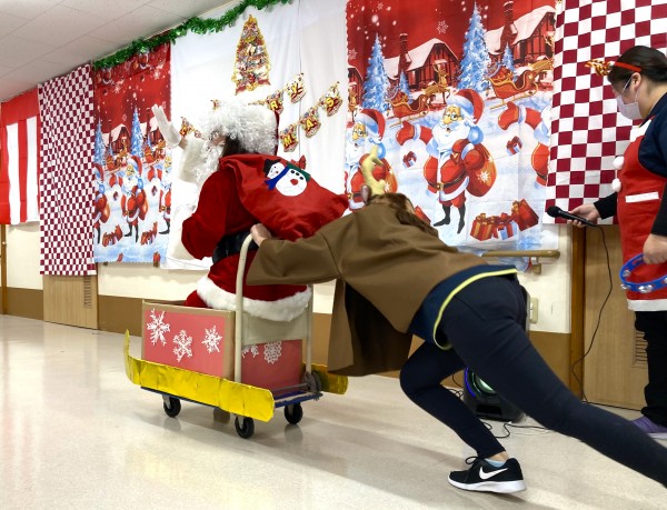 皆様お待ちかね!プレゼントをたんまり抱えたサンタ登場!