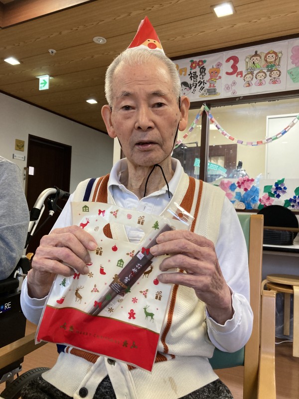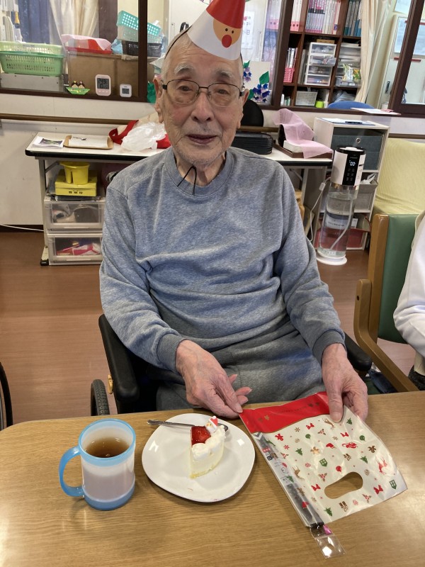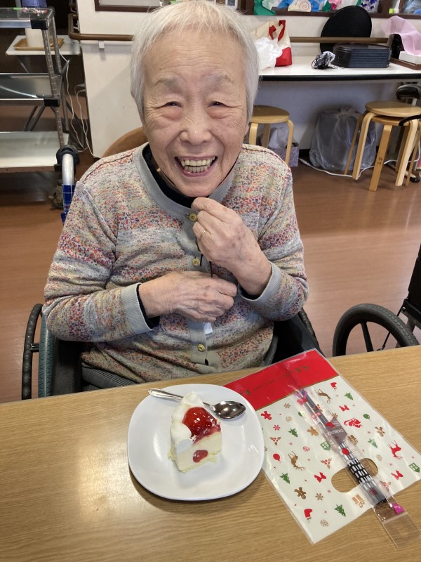 入居者様はクリスマスケーキをとても美味しそうに召し上がり、プレゼントも喜んでくださいました