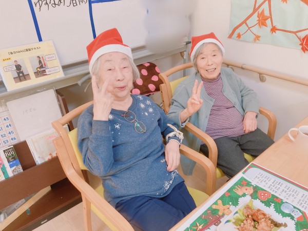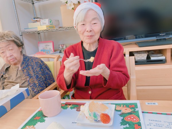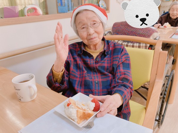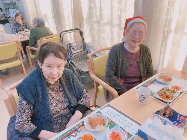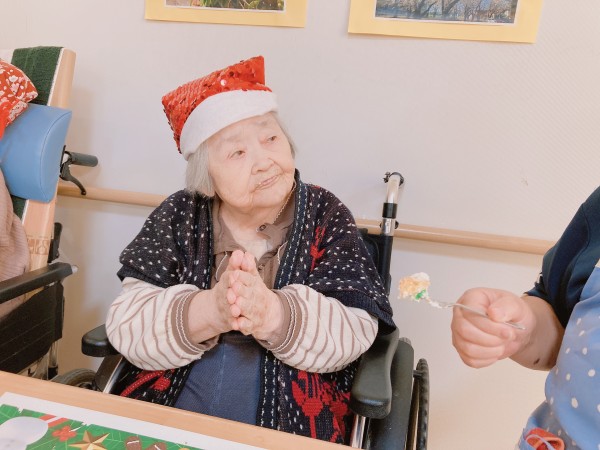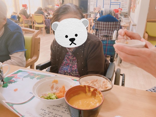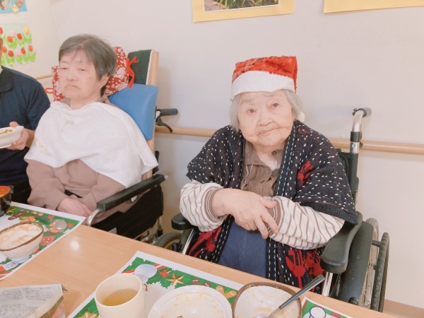 ご飯の前には皆様でジングルベルを歌いました!最初は恥ずかしかったお母様も歌っている職員に合わせて一緒に楽しく歌っておられました