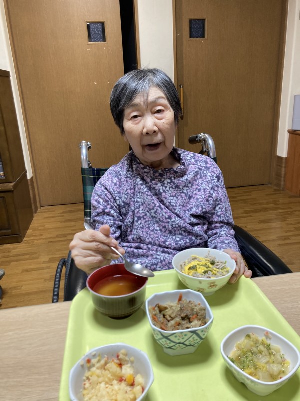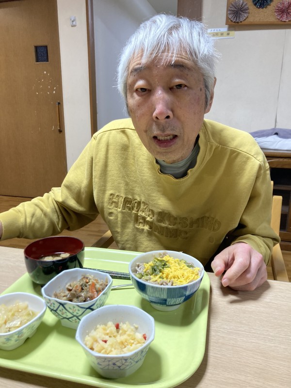 夕食にみなさんで年越しそばを食べてお祝いしました。