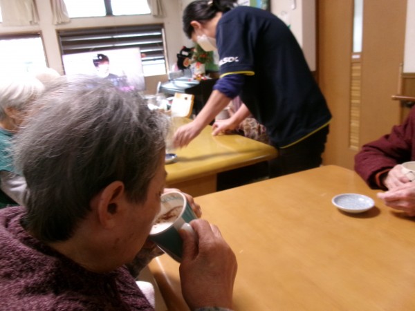 3. 1/2 おやつにホットチョコレート(≧▽≦)温まるぅ~!残りのホイップクリーム入れて豪華~!