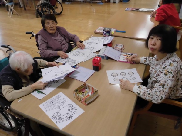本日は、本館・入居者様の塗り絵の作品をご紹介します!