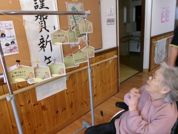 1月1日に行われたレクリエーション。皆様は、絵馬にどんな願いを込められたのでしょうか。