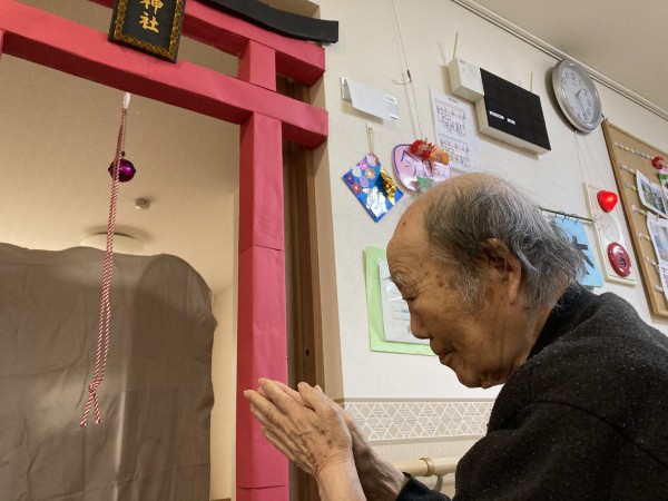 職員の協力で立派な鳥居が出来上がり、ご利用者様にお詣りしていただきました。