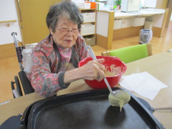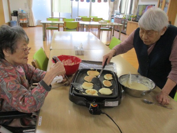 今日はご入居者様にホットケーキを作っていただきました♪