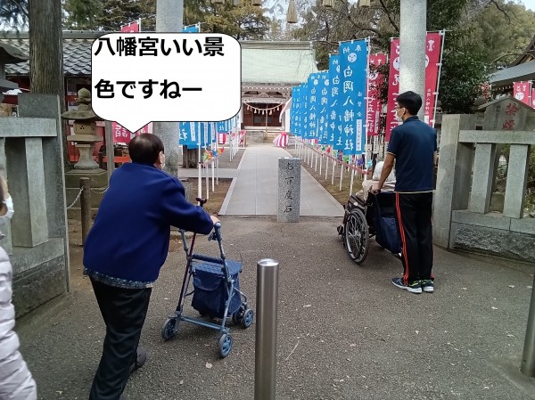 いい景色そのものである八幡宮を見つつ、鳥居をくぐっていきます