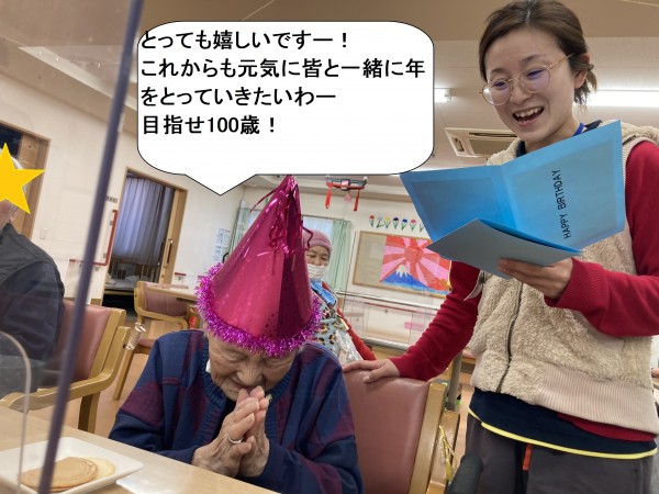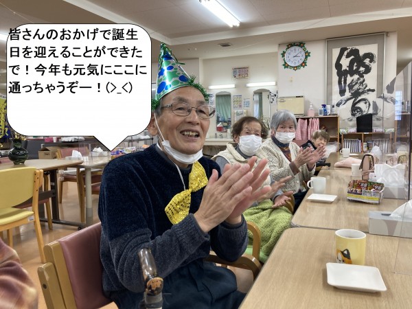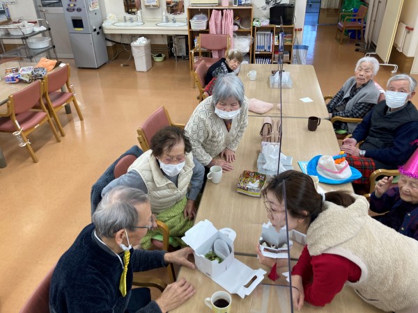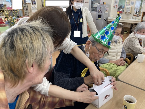 さて、本日の遊蓮田は、今月にお誕生日を迎えられたご利用者様の、お祝いの光景をお届けしたいと思います♪