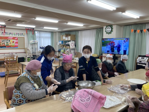 皆さんにはおしるこのお餅を作っていただきました。