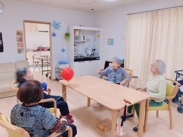 とある日のレクで風船バレーを行いました!(^^♪