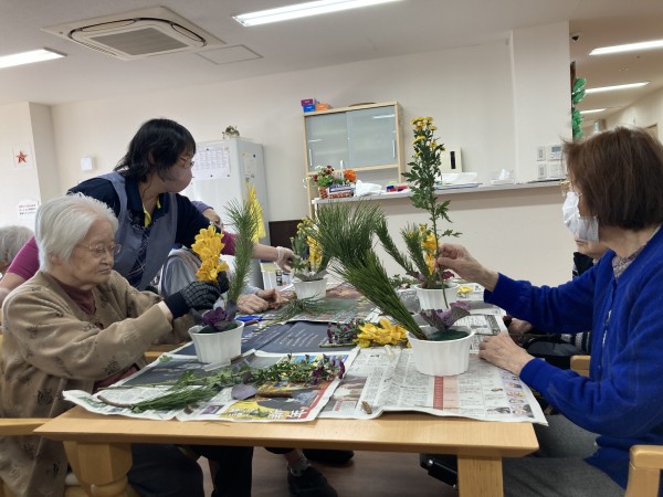 久しぶりのフラワーアレンジメントでしたが、皆さんの顔が活き活きしていて、先生も職員もやりがいのあるレクになりました!!