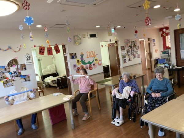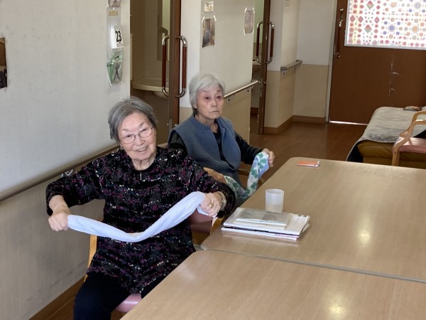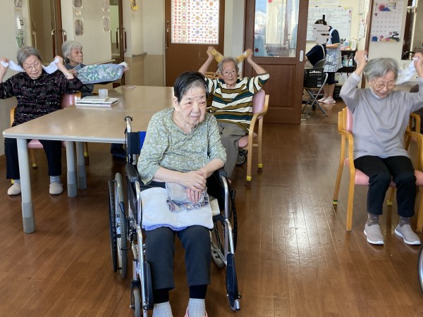 タオル体操でゆったりゆっくり体を動かせて