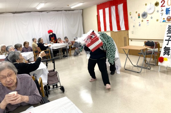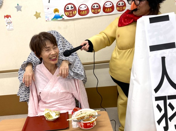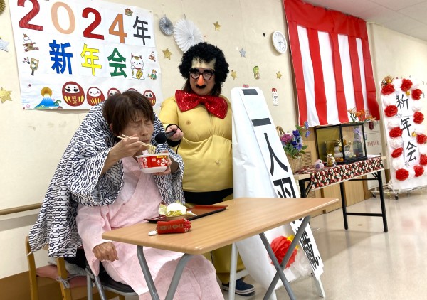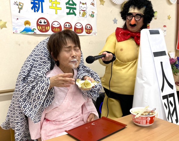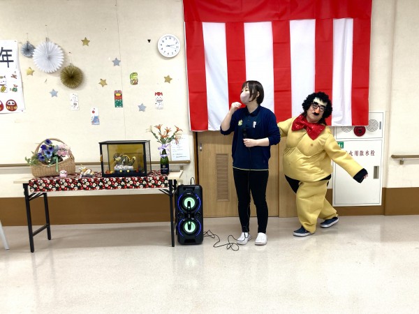 獅子舞による華麗な舞いの後は、愉快なスタッフによる二人羽織です\(^o^)/
