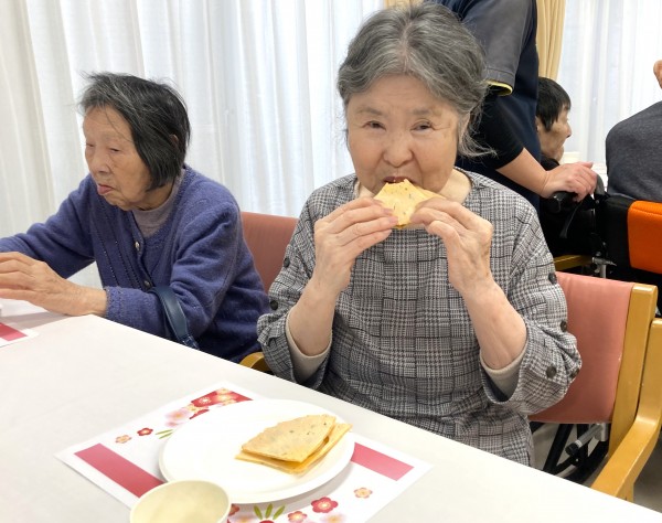 本日のおやつはえびせんの間にたこ焼きを挟んだ「たこせん」(*´▽`*)