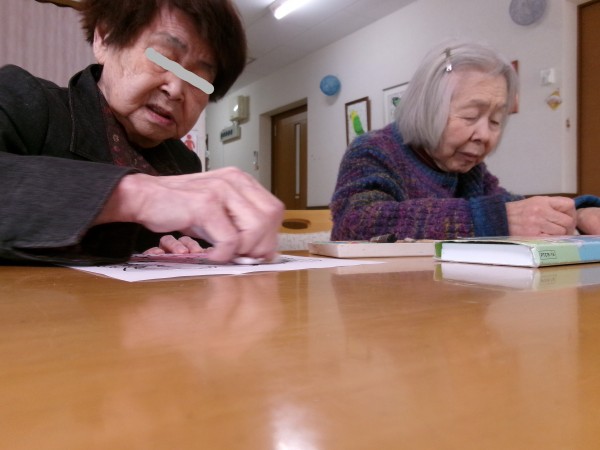 1/28 昼下がり、節分に向けて鬼の塗り絵を致しました!色んな鬼さんが出来ました!私に似てる~!っと笑う利用者様(>_