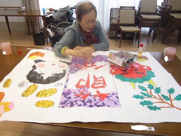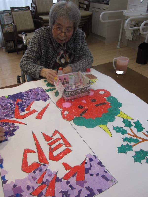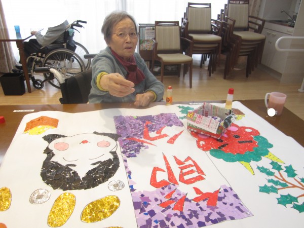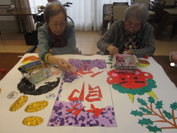 ★☆節分福と鬼2月の貼り絵作成レクリエーション2024年✨ 『みんなの家 三橋6丁目 介護ブログ』☆★