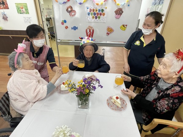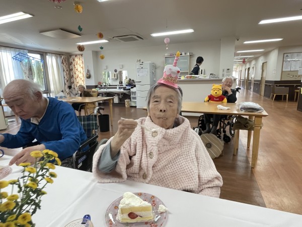 お部屋で過ごされているご利用者様のところには職員みんなでお祝いに行きました☆